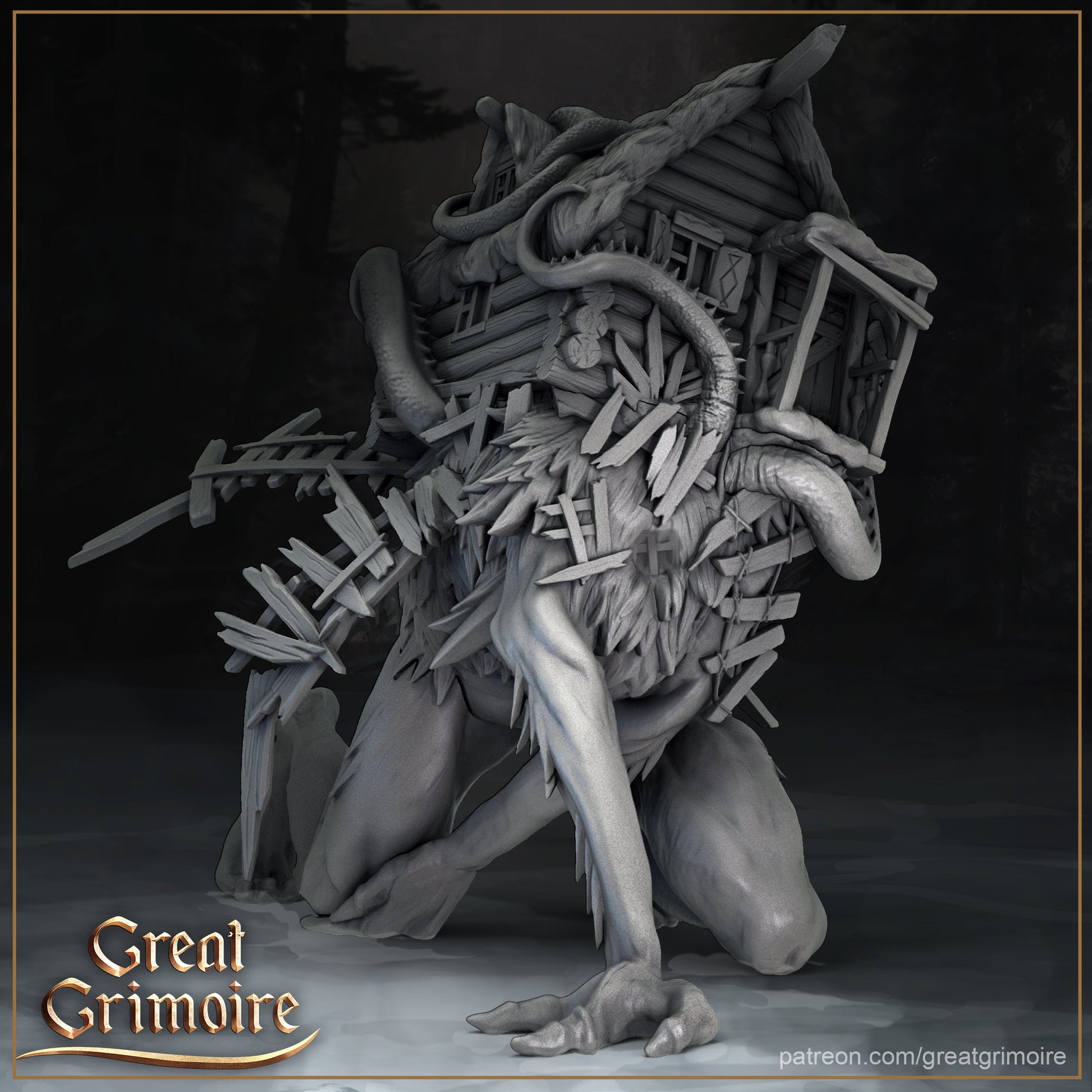 Normal scaled monster house is scaled down from the normal cabin, this is the scale Great Grimoire released as the base 32mm scale.Scaled up version of the monster is available that puts it more in line with the ordinary cabin. All models are supplied unassembled and unpainted. This will be shipped in multiple pieces so additional sanding, priming, or line filling may be needed.Pictures and thumbnails are examples only and the final product may vary. Follow me on IG @ShooterMcgavinminiatures to see more actual prints of minis and minis painted!We are officially authorized to sell physical prints of the Great Grimoire Miniatures digital .stl files of this model can be purchased by joining the Great Grimoire Miniatures Patreon (at: www.patreon.com/greatgrimoire), or going to https://www.myminifactory.com/users/greatgrimoire.