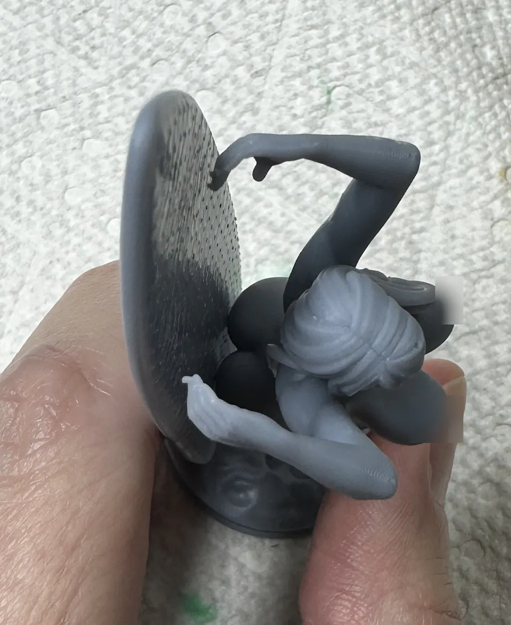 I do have a problem with the design, which is no fault of Mcgavin Miniatures. It seems that the design does not allow the miniature to hold the surfboard as in the renders. Her arms do not reach the surfboard to hold it, because her behind is sticking out too far and makes contact with the board first not allowing the hands to wrap around the board.