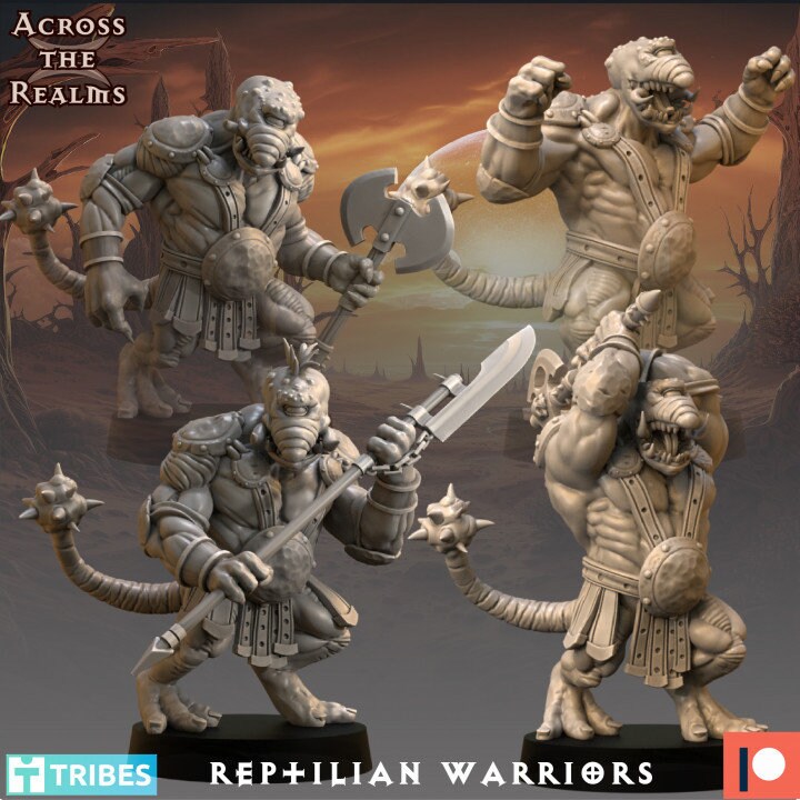 Across the Realms Miniatures are printed in high quality, ABS Like Gray resin in order to provide a mixture of sharp details and quality. The miniatures are printed for 32mm Scale. No bases included.Model stands about 40mm tallComes with all Four modelsAll models are supplied unassembled and unpainted. This will be shipped in multiple pieces so additional sanding, priming, or line filling may be needed.Pictures and thumbnails are examples only and the final product may vary.